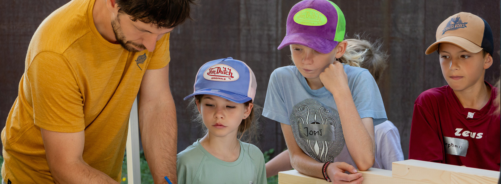Zum Hausen braucht man Möbel! Zum Beispiel einen Stuhl, auf dem man sitzt, daneben ein Tisch oder ein Bett mit einem Regal darüber. Aber wer sagt, dass das immer so sein muss? Kann ein Tisch nicht auch ein Bett sein und der Stuhl zum Regal werden, gibt es vielleicht sogar alles in einem - ein STUTIBETRE? Das und vieles mehr werden wir mit euch gemeinsam erforschen und bauen. Von der Skizze zum Experiment mit Holz und anderen Materialien werden wir neue Möbel erfinden und unsere Sitz-Liege-Stell und Lege-Gewohnheiten auf den Kopf stellen!